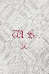 Keywords: Bröllopslinne. Monogram - Hallwylska museet - 87258.tif DUK och SERVETTER trettioen stycken två dussin och sju stycken Duk Med längdgående mittsöm Längd omkring 5 3 cm ; bredd omkring 2 14 m Servetter Mönster fällning och märkning siffertalet här 36 som på duken Sidlängd omkring 79 cm <br/><br/>Gåva till Wilhelmina Kempe till hennes brudutstyrsel år 1865 från hennes föräldrar Wilhelm Heinrich Henrik Kempe och Johanna Kempe original caption Bröllopslinne Monogram HWY Gr VIII I B a 01 <br/> Nyckelord Detalj Monogram Bröllopslinne Linne Föremålsbild Textilier Vit Röd HWY place of origin original filename hm_dig4897_11831 19094 inventory number HWY VIII I B a 01 87258 CC-BY-SA Jens Mohr Jens Mohr White textiles Red Textile napkins Media contributed by LSH unmatched objKeyword Media contributed by LSH unmatched keyword Monograms WK WK letter combinations Monograms embroidered Media contributed by LSH 2013-10 |