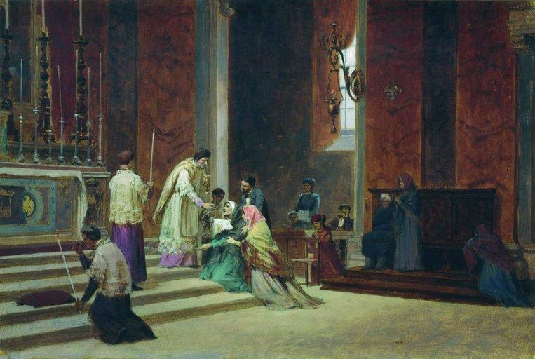 View Original:bronnikov_catholic_mass_1869.jpg (1000x671)