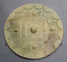 Keywords: Bronze mirror with four dots and arc design pattern and inscription, Western Han dynasty, from M15 at the construction site of Boerduo Shanzhuang, Taihe Gang, Guangzhou - Hong Kong Museum of History - DSC00793.JPG en Exhibit in the Hong Kong Museum of History Hong Kong This artwork is old enough so that it is in the public domain Photography was permitted in the museum without restriction 2014-07-27 01 37 28 own Daderot other versions PD-100 cc-zero Bronze mirrors of China in the Hong Kong Museum of History Uploaded with UploadWizard Bronze mirrors of the Western Han Dynasty |