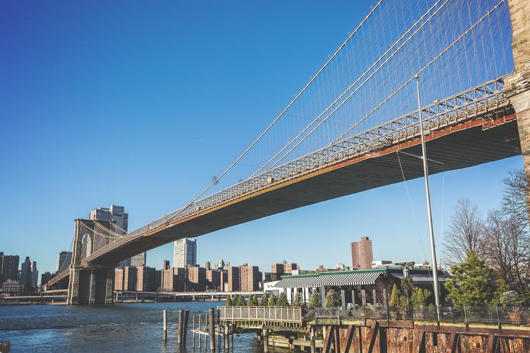 Keywords: brooklyn bridge new york famous building bridge crossing historic monument architecture river nyc urban downtown usa cityscape waterfront landmark america metropolis water tourism suspension bridge