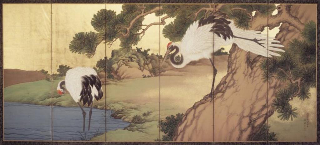 | Keywords: Brooklyn Museum - Cranes and Pines - Yokoyama Kazan.jpg Artwork Creator Yokoyama Kazan Cranes and Pines 1836 six-panel screen<br> opaque watercolor ink gold paper cm 169 6 365 8 Institution Brooklyn Museum Brooklyn Museum location asia Artwork-provenanceorcl gift the Asian Art Council http //www brooklynmuseum org/opencollection/objects/160581/Cranes_and_Pines Online Collection of Brooklyn Museum; Photo Brooklyn Museum 1999 97_transp4782 jpg 1999 97 Brooklyn_Museum-no_known_restrictions PD-old-100 Yokoyama Kazan Watercolor paintings of landscapes Art of Japan in the Brooklyn Museum Cranes in Japanese art Pines in art 1836 watercolor paintings |