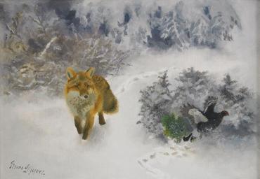 | Keywords: Bruno Liljefors - Fox and Black Grouse cock in winter landscape.jpg Artwork en Fox and Black Grouse cock in winter landscape sv Räv och orrtupp i vinterlandskap creator Bruno Liljefors Oil canvas cm 35 50 http //auktionsverket se/auction/fine-arts/2010-12-08/2635-bruno-liljefors-1860-1939-rav-i-vinterlandskap-sig/ Stockholms Auktionsverk PD-old-auto 1939 Paintings by Bruno Liljefors with birds Paintings by Bruno Liljefors with foxes Black Grouse in art Winter landscape paintings Paintings of birds in Sweden Oil paintings of birds Landscape paintings of Sweden Foxes hunting in art |