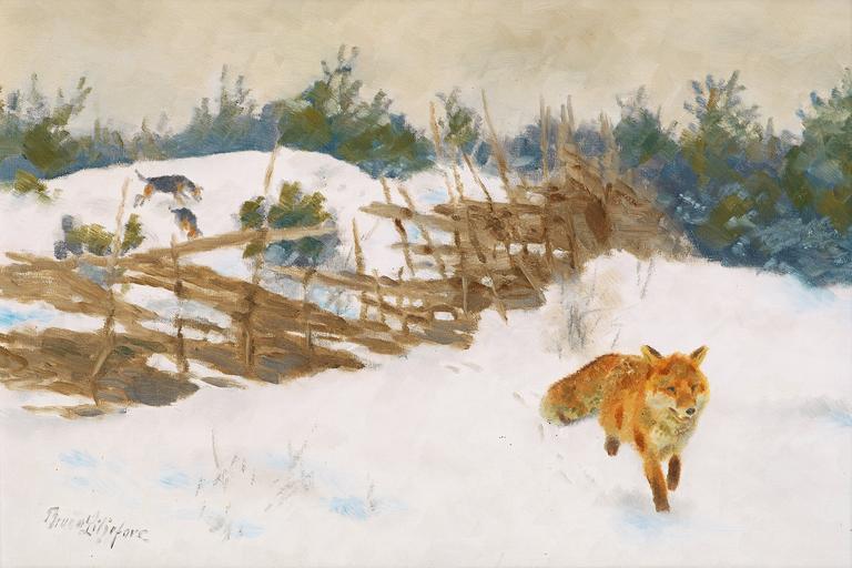 | Keywords: Bruno Liljefors - Räv i vinterlandskap.jpg date oil canvas cm 55 46 www bukowskis se/ Public domain Other versions PD-old-auto 1939 Hunting dogs in art Paintings of foxhunting Winter landscape paintings Landscape paintings of Sweden Paintings by Bruno Liljefors with foxes |