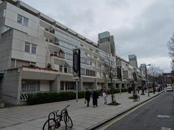 | Keywords: road outdoor building complex architecture building It was designed by Patrick Hodgkinson[2] in the mid-1960s, based on studies by Leslie Martin.[3] It was initially planned as a private development at a time when private, mixed-use development in the UK was rare. Building started in 1967 and was completed in 1972, though the building fell some way short of its intended size. The original plan extended up to Euston Road but the Ministry of Defence would not release the site of a building they leased for use by the Territorial Army (and that still stands next to the Centre today)[citation needed].   After failing to attract sufficient private buyers on time, the residential section was leased to the London Borough of Camden for use as council housing, while the developer retained ownership of the structure and shopping areas. The exterior of the building was never painted because the Borough could not afford to complete work on the building after they took control. In Hodgkinson's design, the blocks would have been painted cream, a shade typical of the Georgian period, as a homage to the terraced houses that previously stood on the site and those that still surround it.   Despite being widely disliked by those who are unsympathetic to modernist architecture, it achieved Grade II status in 2000. By this time, however, many of its shop premises were unoccupied. Plans for renovation had repeatedly been blocked by residents' committees but in November 2002, the £22 million project began. This included the painting of the blocks in their originally-planned colour and the commissioning of artist Susanna Heron to introduce water features to the central space.[4][2] The major work was completed in late 2006 with the opening of branches of several high street chain stores and restaurants. The dual management has caused problems though, as the landlord restored the structure of the estate but the council is responsible for maintenance of the residential properties - so while the concrete structure was restored, the windows remained untouched, detracting from the overall aesthetic of the development. In 2007, the council started work on replacing the windows that has resulted in the residents having scaffolding outside their flats for the second time in just a few years.   Now referring to itself as The Brunswick, the centre contains 560 flats, various shops, cafés and restaurants, a Waitrose supermarket, and the Renoir Cinema (one of London's Curzon Cinemas group). It was designed by Patrick Hodgkinson[2] in the mid-1960s, based on studies by Leslie Martin.[3] It was initially planned as a private development at a time when private, mixed-use development in the UK was rare. Building started in 1967 and was completed in 1972, though the building fell some way short of its intended size. The original plan extended up to Euston Road but the Ministry of Defence would not release the site of a building they leased for use by the Territorial Army (and that still stands next to the Centre today)[citation needed].   After failing to attract sufficient private buyers on time, the residential section was leased to the London Borough of Camden for use as council housing, while the developer retained ownership of the structure and shopping areas. The exterior of the building was never painted because the Borough could not afford to complete work on the building after they took control. In Hodgkinson's design, the blocks would have been painted cream, a shade typical of the Georgian period, as a homage to the terraced houses that previously stood on the site and those that still surround it.   Despite being widely disliked by those who are unsympathetic to modernist architecture, it achieved Grade II status in 2000. By this time, however, many of its shop premises were unoccupied. Plans for renovation had repeatedly been blocked by residents' committees but in November 2002, the £22 million project began. This included the painting of the blocks in their originally-planned colour and the commissioning of artist Susanna Heron to introduce water features to the central space.[4][2] The major work was completed in late 2006 with the opening of branches of several high street chain stores and restaurants. The dual management has caused problems though, as the landlord restored the structure of the estate but the council is responsible for maintenance of the residential properties - so while the concrete structure was restored, the windows remained untouched, detracting from the overall aesthetic of the development. In 2007, the council started work on replacing the windows that has resulted in the residents having scaffolding outside their flats for the second time in just a few years.   Now referring to itself as The Brunswick, the centre contains 560 flats, various shops, cafés and restaurants, a Waitrose supermarket, and the Renoir Cinema (one of London's Curzon Cinemas group).  |