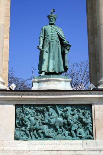 | Keywords: Budapest Heroes square Bocskai István.jpg Stephen Bocskay or Bocskai István Millenium Monument on Heroes' square Budapest Budapest Hungary Štefana Bocskaye v Pamatníku Tisíciletí na Náměstí Hrdinů v Budapešti Maďarsko Budapest Hősök tere Bocskai István bronzszobra Alatta dombormű felirata Bocskai hajdúi harcban a császári zsoldosokkal own Karelj 2009-04 47 30 55 66 N 19 4 41 02 E Statue of István Bocskay Millennium Monument Budapest Reliefs on Millennium Monument Budapest Warriors in art |