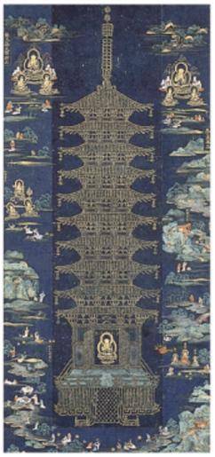 | Keywords: Buddhist Paradise with Golden Pagoda.gif A picture of Buddhist Paradise with Golden Pagoda 紺紙著色金光明 王経金字 塔曼荼羅図 konshichakushoku konkōmyō saishō ōkyō kinji hōtō mandarazu one of ten hanging hanging scrolls mandalas 139 7 cm x 54 8 cm Gold paint on indigo blue paper Located at Chūson-ji Hiraizumi Iwate Japan http //www mext go jp/b_menu/hakusho/image/hpab200101/xb2090401 gif Ministry of Education Culture Sports Science and Technology author Heian period before 1185 PD-old-100 Chusonji Mandalas of Japan Paintings of the Heian period National Treasures of Japan paintings Konkōmyō Saishōō-kyō |