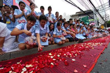 Keywords: buddhists rose petals ceremony people peace tradition thailand bangkok belief wat phra dhammakaya temple dhammakaya pagoda more than million budhas gold buddhism