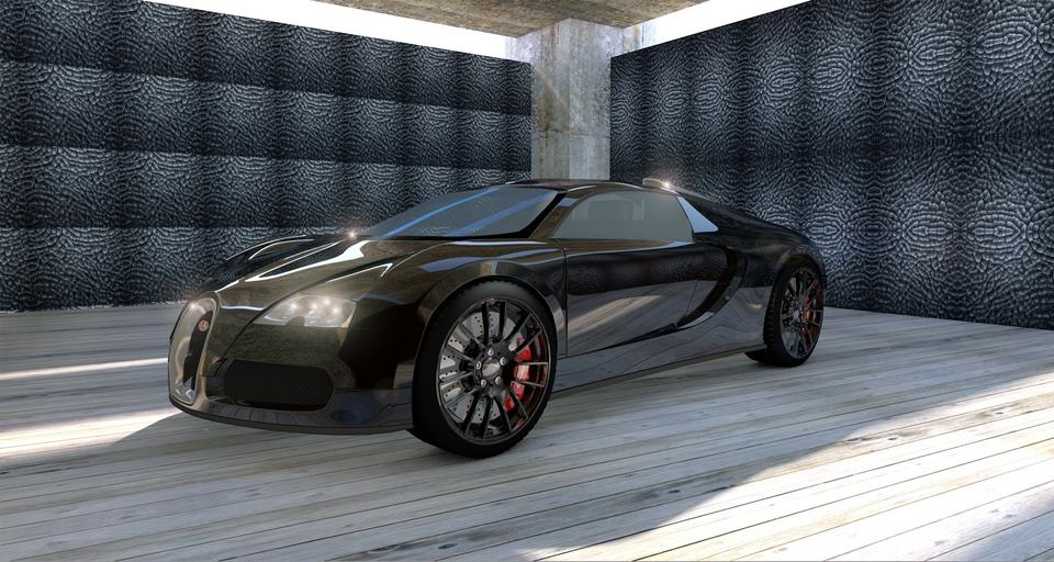 Keywords: bugatti veyron sports car automobile auto bolide prototype rendering texture 3d model bugatti veyron contour metallic sun reflections shadow hall concrete wall monochrome 3d computer graphics machine 3d visualization pirohd finish design