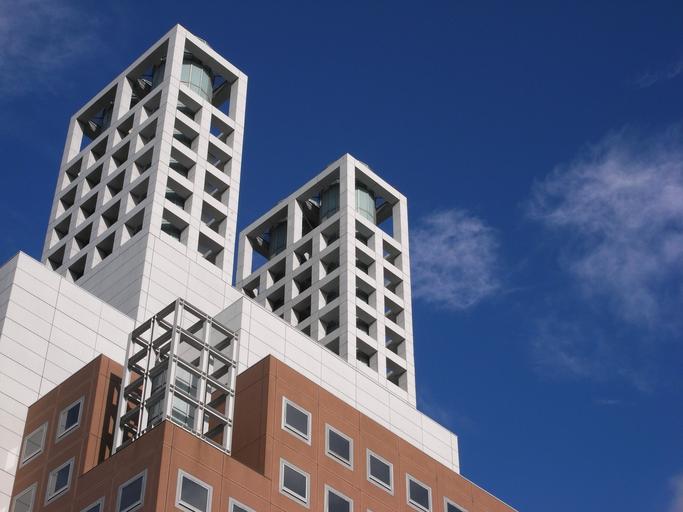 Keywords: building cube tower buildings towers city urban japan japanese structure geometric architecture architecture design futuristic sky blue downtown