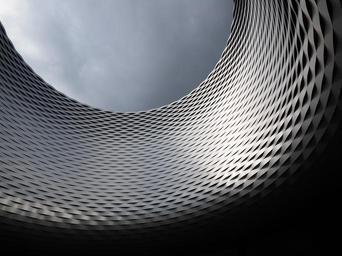 Keywords: building facade architecture hole basel opening places of interest event hall fair architectural landmark herzog de meuron steel mesh fair construction event location mch messe messe basel steel metal metal tapes