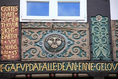 Keywords: building home truss fachwerkhaus font gold gold font inscription face decor carving