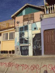 Keywords: building house architecture city simple blue decay graffiti vandalism