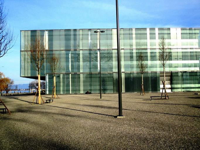 Keywords: building new building glass facades architecture lanterns forecourt young trees sky würth group fastening and assembly technology lake constance rorschach switzerland