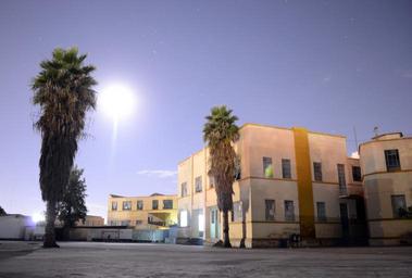 Keywords: building night school street buildings dusk sunset moon palmas twilight at night