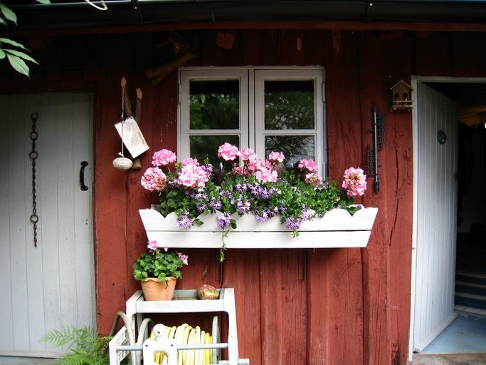 Keywords: building red summer the bloom box window flowers pink table white door