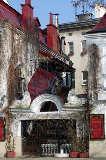 Keywords: building restaurant white red jewish