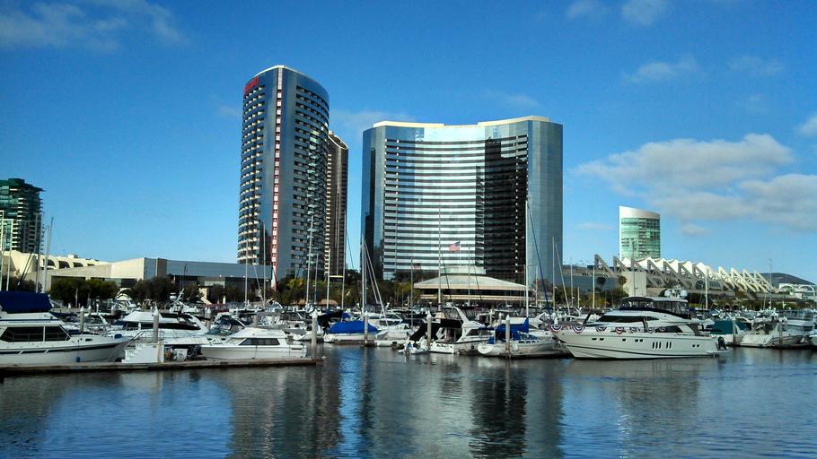 Keywords: buildings waterfront cityscape skyline city urban marina downtown reflection water pier boats coast towers modern skyscapers skyscraper metropolitan metropolis harbor