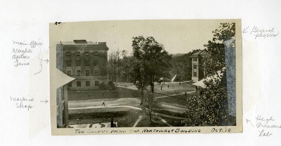 | Keywords: BuildingsonOldCampus 043.jpg  The building on the upper left housed Weights Optics and Time To the lower left are shown the machine shops To the upper right is General Physics and to the lower right is the High Pressure Lab National Institute of Standards and Technology 10/1/1918 National Institute of Standards and Technology The images in the Buildings on Old/NBS DC Campus Photographic Collection are in the public domain and are not subject to copyright in the United States However please pay special attention to the individual works to make sure there are no copyright restrictions indicated Individual works may require securing other permissions from the original copyright holder Use of the images from NIST Digital Collections is not restricted but a statement of attribution is required Please use the following attribution statement National Institute of Standards and Technology Digital Collections Gaithersburg MD 20899 PD-USGov National Bureau of Standards National Institute of Standards and Technology Buildings of the United States government in Washington D C  |