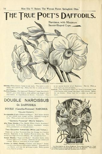 Keywords: Bulbs roses plants of all kinds for winter blooming (16369842536).jpg of Hoop Petticoat Narcissus on page 13 1 am <br> confident that if you try them you will be pleased The bulbs <br> are of first quality and will produce nice flowers 41881522 131173 64737 Page 14 Text http //www biodiversitylibrary org/page/41881522 1897 10 5962/bhl title 64737 Ella V Baines Firm ; Henry G Gilbert Nursery and Seed Trade Catalog Collection NameFound Gardenia NameConfirmed Gardenia Ellis EOLID 29805 NameFound Ornatus NameConfirmed Ornatus NameBankID 4438455 Biodiversity Heritage Library Bulbs roses plants of all kinds for winter blooming all the very best and choicest varieties 1897 Garden Stories Bulbs Plants Catalogs Flowers Plants Ornamental Seed industry and trade Seeds Trade catalogs U S Department of Agriculture National Agricultural Library bhl page 41881522 dc identifier http //biodiversitylibrary org/page/41881522 bhlGardenStories BHLinbloom bulbs plants plants ornamental u s department of agriculture national agricultural library bhlgardenstories bhlinbloom Information field Flickr posted date ISOdate 2015-01-29 CC-BY-2 0 BioDivLibrary https //flickr com/photos/61021753 N02/16369842536 2015-08-24 06 55 44 cc-by-2 0 PD-old-70-1923 Bulbs roses plants of all kinds for winter blooming Photos uploaded from Flickr by Fæ using a script |