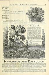 Keywords: Bulbs roses plants of all kinds for winter blooming (16208176988).jpg Miss Ella V Baines The Woman Florist Springfield Ohio <br> 11 <br> BYBLOOMS <br> SINGJLB <br> LJLTB <br> TULIPS <br> CALLED <br> White grounds variegated with various colors Fifty finest <br> sorts mixed Price 3 cents each; twelve for 25 cents <br> SINGJLB <br> JLJITB <br> TULIPS <br> CALLED <br> Yellow grounds variegated with various colors Fifty finest <br> sorts mixed Price 3 cents each; twelve for 25 cents <br> BIZARRES <br> SPECIAL OFFER ” For only 40 cents I will send twelve bulbs eaoh of Byblooms and Bizarres <br> iyi <br> mSk <br> The Crocus is one of the first flowers of <br> Spring and one of the best for blooming <br> in the house during Winter Half a doz- <br> en bulbs may be planted in a pot and will <br> make a very pretty show For garden <br> culture plant bulbs two inches deep and <br> two or three inches apart They are so <br> cheap and pretty they ought to be found <br> in every garden in abundance They <br> bloom splendidly when planted on the <br> lawn among the grass They lift their <br> bright heads up through the sod icry <br> early and give the lawn a charming a -- <br> pect The sorts we offer are especially <br> Strong and fine <br> Price 8 cents per dozen; 40 cents per <br> hundred by express If by mail bQ cents <br> p r hundred <br> Sir Walter Scott ” Striped white and pur- <br> ple <br> Cloth Of Gold ” Brightest golden- <br> yellow <br> Cloth of Silver ” Beautiful silver <br> Dandy ” A light blue bordered with <br> – white <br> David Rizzio ” Richest dark purple <br> JHoiit Blanc ” Purest white <br> Extra Fine Mixture ” All colors <br> sS et <br> BED AND CLUSTER OF CROCUS <br> Narcissus and Daffodils <br> Sweet harbingers of Spring that jump from old Winter's lap with cheeks of gold and silver and bedeck the earth with beauty <br> filling the air with delicious perfume The -wonderful creations in the way of new varieties have awakened an interest and en- <br> thusiasm among the lovers of flowers that has placed this The Flower of the Poets in the front rank of popularity and they <br> merit all the praise that can be bestowed upon them Appearing as theydo just after bleak Winter thev turn our gardens lawns <br> and woodlawn walks into gorgeous masses of gold and silver with a fragrance that is enchanting They are equally valuable <br> for growing in pots for Winter flowering and some of the varieties are forced in immense quantities by florists for cut flowers in <br> Winter Narcissus are of the easiest culture and all except the Polyanthus varieties are perfectly hardy My collection has been <br> much enriched and embraces in addition to the old favorites many new varieties including the magnificent new hybrids <br> NOTE ” I wish to say to my friends that the different varieties of Narcissus force into bloom in the house during Winter as readilf <br> as the Hyacinth There is nothing finer in the flower line for this Purpose Indeed they are my choice of all Winter-flowering bulbs <br> They are so graceful and pretty I can especially recommend for house culture the following charming varieties Golden Spur Poetl <br> cus Ornatus Orange Phoenix Sulphur Phoenix Von Sion Horsfieldii Giant Princess Paper White and Chinese Sacred Lily <br> Try these varieties They will not disappoint you Nothing is prettier 41881519 131173 64737 Page 11 Text http //www biodiversitylibrary org/page/41881519 1897 10 5962/bhl title 64737 Ella V Baines Firm ; Henry G Gilbert Nursery and Seed Trade Catalog Collection NameFound Ornatus NameConfirmed Ornatus NameBankID 4438455 NameFound Polyanthus NameConfirmed Polyanthus NameBankID 3485302 NameFound Sion NameConfirmed Sion NameBankID 4854187 Biodiversity Heritage Library Bulbs roses plants of all kinds for winter blooming all the very best and choicest varieties 1897 Garden Stories Bulbs Plants Catalogs Flowers Plants Ornamental Seed industry and trade Seeds Trade catalogs U S Department of Agriculture National Agricultural Library bhl page 41881519 dc identifier http //biodiversitylibrary org/page/41881519 bhlGardenStories BHLinbloom bulbs plants plants ornamental u s department of agriculture national agricultural library bhlgardenstories bhlinbloom Information field Flickr posted date ISOdate 2015-01-29 CC-BY-2 0 BioDivLibrary https //flickr com/photos/61021753 N02/16208176988 2015-08-24 06 50 41 cc-by-2 0 PD-old-70-1923 Bulbs roses plants of all kinds for winter blooming Photos uploaded from Flickr by FΓ¦ using a script