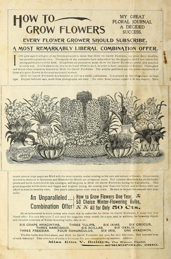 Keywords: Bulbs roses plants of all kinds for winter blooming (16395858915).jpg n <br> OW TO <br> CROW FLOWERS <br> MY GREAT <br> FLORAL JOURNAL <br> A DECIDED <br> SUCCESS <br> EVERY FLOWER GROWER SHOULD SUBSCRIBE <br> A MOST REMARKABLY LIBERAL COMBINATION OFFER <br> I <br> AM quite sure it will give all my friends pleasure to know that How TO GROW FLOWERS my great floral monthly <br> has proved a grand success Thousands of my customers have subscribed for the magazine and it now stands first <br> among publications of the kind It has been my purpose to make How to Grow Flowers useful and practical <br> in every way It tells what to do how to do it and When to do it in order to have success with flowers Plants grow <br> and bloom when treated as directed in HOW TO GROW FLOWERS The articles published are the actual experiences of <br> those who grow flowers in the most successful manner « <br> How TO Grow Flowers is a beautiful as well as a useful publication It is printed on fine whitp paper in large <br> type Elegant half-tone cuts made from photographs are used No other floral journal equals it in any respect Each <br> I <br> i- ~ mi _ U\ u <br> month sixteen large pages are filled with the most valuable matter relating to the care and culture of flowers Departments <br> devoted to Answers to Questions and Hints for the Month are of especial merit Full cultural directions lor all the bulbs <br> plants and seeds mentioned in this catalogue will be given in How TO GROW FLOWERS during the Fall months This <br> great magazine will be better and bigger and brighter during the coming year than ever before and no flower lover can <br> afford to miss its monthly visits One year's subscription costs only 25 cents Be sure to include this amount with your <br> order <br> fin Unparalleled How t0 Grow F owers 0ne Year x <br> ¢ ¢ i 50 Choice Winter-Flowering Bulbs <br> Combination Offer a x Alitor Only so cts <br> As an inducement to every person who reads this to subscribe for HOW TO GROW FLOWERS I make this very <br> liberal offer For only filty cents I will send the magazine every month for a year and in addition the following elegant <br> and valuable collection of Winter-flowering bulbs ” fifty in all <br> SIX GRAPE HYACINTHS THREE TULIPS SIX IXIAS SIX CROCUS <br> THREE NARCISSUS SIX SCILLAS SIX OXALIS <br> THREE FREESIAS FOUR RANUNCULUS SIX IRIS ONE HYACINTH <br> The fifty bulbs described above and HOW TO GROW FLOWERS one year for only fifty cents Did you ever hear <br> of such liberality This collection of bulbs is Premium No 500 ” always order by number Address <br> JMiaS EJll£l V BaineS 'The Woman Florist <br> - ' – – – – SPRINGPIBIvD OHIO 41881540 131173 64737 Cover http //www biodiversitylibrary org/page/41881540 1897 10 5962/bhl title 64737 Ella V Baines Firm ; Henry G Gilbert Nursery and Seed Trade Catalog Collection NameFound Ixias NameConfirmed Ixias EOLID 20134 NameBankID 3002058 NameFound Oxalis NameConfirmed Oxalis sect Pseudobulbosae Norlind EOLID 40270 NameFound Ranunculus NameConfirmed Ranunculus EOLID 37662 NameBankID 2576523 Biodiversity Heritage Library Bulbs roses plants of all kinds for winter blooming all the very best and choicest varieties 1897 Garden Stories Bulbs Plants Catalogs Flowers Plants Ornamental Seed industry and trade Seeds Trade catalogs U S Department of Agriculture National Agricultural Library bhl page 41881540 dc identifier http //biodiversitylibrary org/page/41881540 bhlGardenStories BHLinbloom bulbs plants plants ornamental u s department of agriculture national agricultural library bhlgardenstories bhlinbloom Information field Flickr posted date ISOdate 2015-01-29 CC-BY-2 0 BioDivLibrary https //flickr com/photos/61021753 N02/16395858915 2015-08-24 06 53 07 cc-by-2 0 PD-old-70-1923 Bulbs roses plants of all kinds for winter blooming Photos uploaded from Flickr by Fæ using a script |