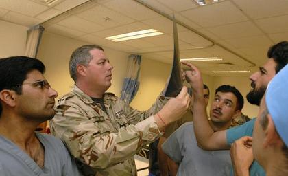| Keywords: Bulgarian doctors assist Afghans at KRMH DVIDS377260.jpg  en An Afghan National Army doctor explains to a Bulgarian medical mentor what he see in an X-ray at Kandahar Regional Military Hospital on Camp Hero in Kandahar Afghanistan The Bulgarian mentors are assisting with procedures training and improving the medical readiness of the ANA 2011-03-12 Petty Officer 2nd Class David Kolmel https //www dvidshub net/image/377260 110312-N-+++++-006 2011-03-14 08 12 CAMP HERO AF PD-USGov-Military-Navy Camp Hero ANA Images from DoD uploaded by Fæ |