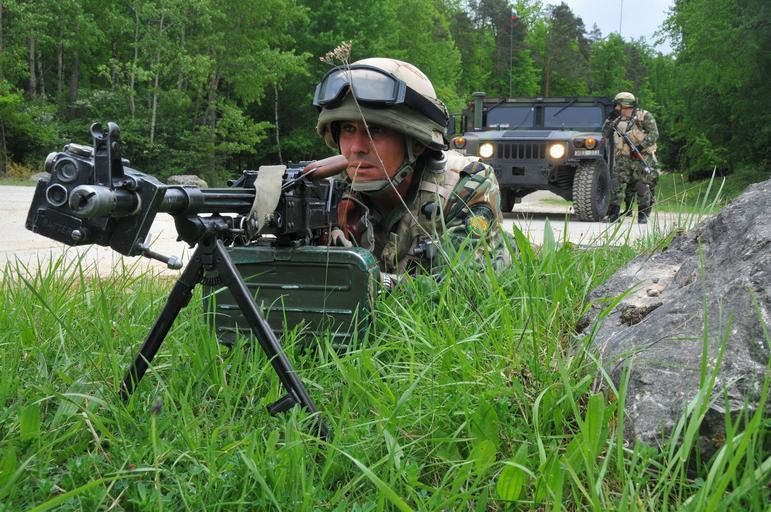 | Keywords: Bulgarian soldier with PK, May 2012.jpg  en A Bulgarian private moves into a firing position during an Operational Mentor Liaison Team training exercise at U S Army Europe's Joint Multinational Readiness Center in Hohenfels Germany May 12 OMLT and Police OMLT training are designed to prepare teams for deployment to Afghanistan to train advise and enable Afghan forces in areas such as counterinsurgency combat advisory and force enabling support operations Photo by Pfc Jordan Fuller 2012-05-12 11 50 31 http //www flickr com/photos/usarmyeurope_images/7302454808/ US Army Europe PD-USGov Uploaded with UploadWizard Bulgarian Land Forces Hohenfels Training Area |
