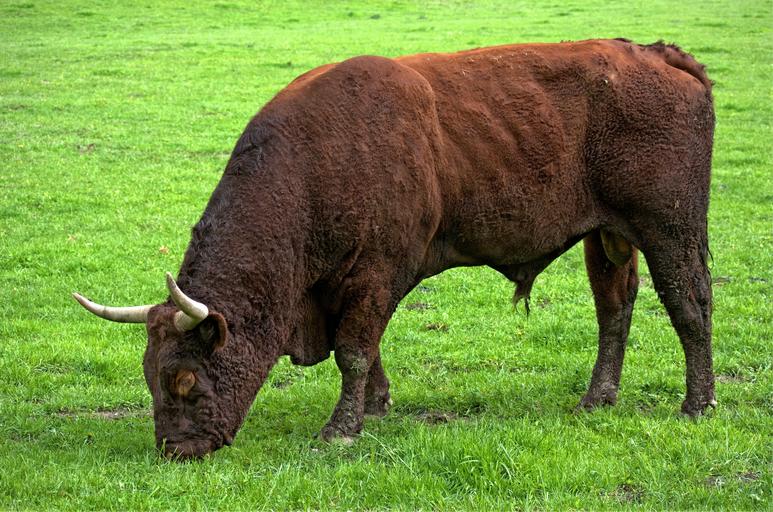 Keywords: bull beef livestock horns agriculture grass eat nature pasture meadow animal ruminant animal world farm cattle