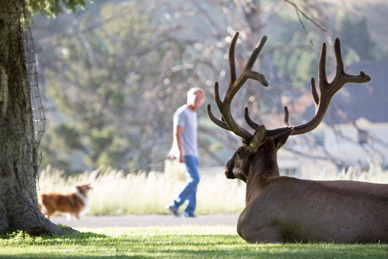 | Keywords: yellowstone national park yellowstonenationalpark yellowstone national park nationalpark wyoming outdoor animal Bull elk in grass at Mammoth Hot Springs and man walking dog in the background; Neal Herbert; July 2014; Catalog #19433d; Original #2315 Bull elk in grass at Mammoth Hot Springs and man walking dog in the background; Neal Herbert; July 2014; Catalog #19433d; Original #2315 |