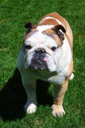 Keywords: bulldog bull dog happy english dog standing animal bully breed smile cute pet serious adorable expression