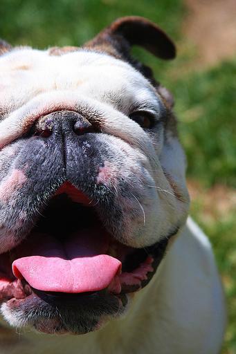 Keywords: bulldog bull dog happy english dog smiling animal bully breed smile cute pet open mouth tongue mouth adorable expression