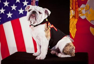 Keywords: bulldog official mascot marine corps usa portrait canine domestic pose sitting dog