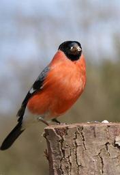 Keywords: bullfinch male bird nature red finch spring avian blue sky colorful plumage beak springtime perched birdwatching outdoors perching