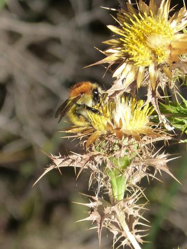 Keywords: bumblebee golden bumblebee thistle libar thorns yellow