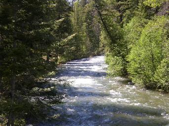 Keywords: Bumping-River-May-2007.jpg The Bumping River is a tributary of the Naches River in Washington in the United States It flows down the east side of the Cascade Range through riparian forests in the Wenatchee National Forest and the William O Douglas Wilderness From its source at Fish Lake near Crag Mountain it flows northeast to Bumping Lake a natural lake enlarged and regulated by Bumping Lake Dam Below the dam the Bumping River continues flowing northeast It is joined by the American River its main tributary a few miles above its mouth where it joins the Little Naches River to form the Naches River Own 2007-05 Williamborg 03 31 29 May 2007 UTC Riparian forests in the United States William O Douglas Wilderness Rivers of Washington state |