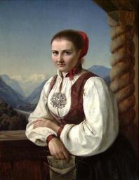 Keywords: Bunadkledd pike i svalgang.jpg oil canvas cm 81 5 63 5 object history credit line accession number http //digitaltmuseum no/things/bunadkledd-pike-i-svalgang-maleri/NMK-B/NG M 04386 Digitalt Museum PD-Art Paintings by Hedevig T C E Lund Images from Digitalt Museum Norway Paintings in the Nasjonalgalleriet 1849 paintings in Norway National costumes of Norway in portrait paintings Paintings of women of Norway People in three-quarter views in art Women hands 19th-century oil on canvas portrait paintings in Norway |