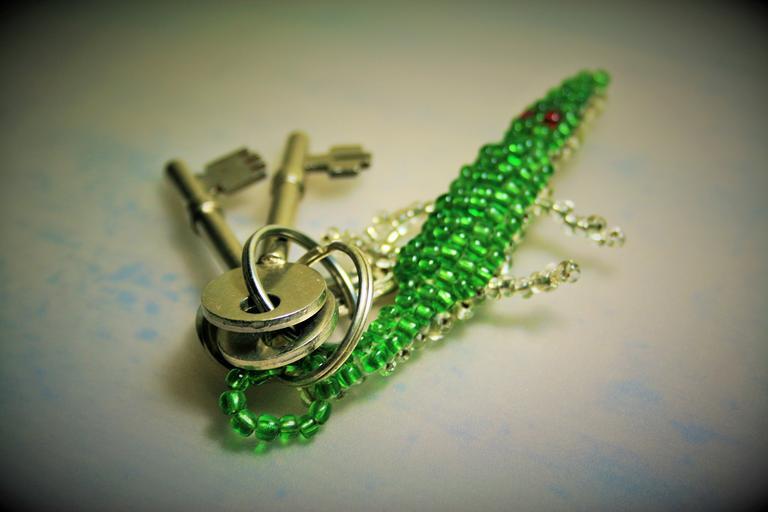 Keywords: bunch of keys key ring keys green beads wire ornamental