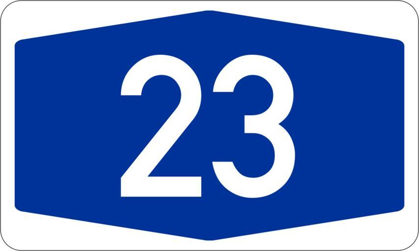 Keywords: Bundesautobahn 23 number.svg Bundesdeutsche Autobahnnummer Automatisch erzeugt durch 3247 German Autobahn number signet Created automatically by 3247 Bundesautobahn numbers 023 23 number
