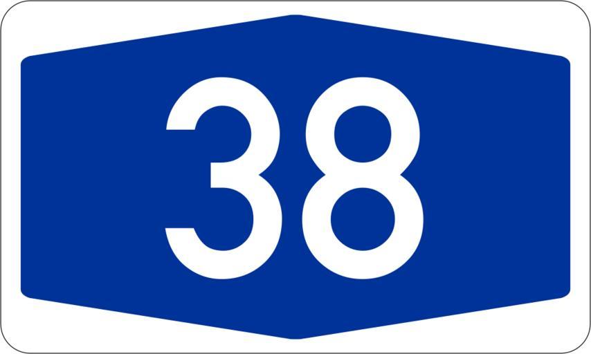 Keywords: Bundesautobahn 38 number.svg Bundesdeutsche Autobahnnummer Automatisch erzeugt durch 3247 German Autobahn number signet Created automatically by 3247 Bundesautobahn numbers 038 Bundesautobahn 38 38 number