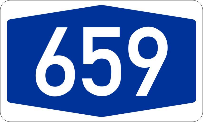 Keywords: Bundesautobahn 659 number.svg Bundesdeutsche Autobahnnummer Automatisch erzeugt durch 3247 German Autobahn number signet Created automatically by 3247 Bundesautobahn numbers 659 Bundesautobahn 659
