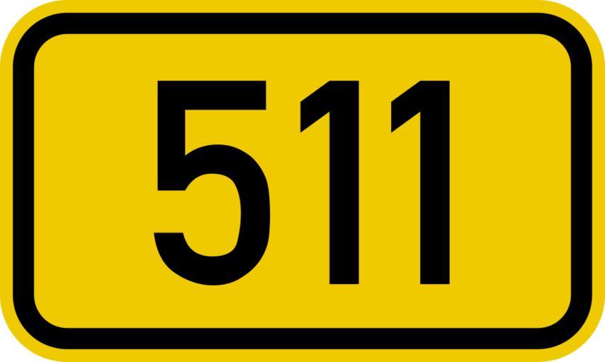 Keywords: Bundesstraße 511 number.svg Bundesdeutsche Bundesstraßennummer Automatisch erzeugt German Federal Road Bundesstraße number signet Created automatically Bundesstraßen numbers 511 svg 511 number