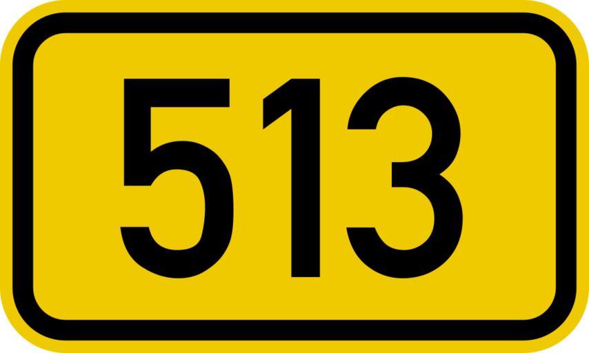 Keywords: Bundesstraße 513 number.svg Bundesdeutsche Bundesstraßennummer Automatisch erzeugt German Federal Road Bundesstraße number signet Created automatically Bundesstraßen numbers 513 svg 513 number