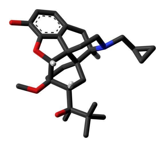 Keywords: Buprenorphine molecule from xtal skeletal.png Skeletal stick model non-chiral hydrogens omitted for clarity of the buprenorphine molecule a drug used as a painkiller and to treat opioid addiction Based on the crystal structure of buprenorphine as determined by X-ray diffraction C H O N 2015-05-14 own Crystallographic data from J Mazurek M Hoffmann A Fernandez Casares P D Cox and M D Minardi June 2014 Buprenorphine http //scripts iucr org/cgi-bin/paper gk2610 Acta Cryst E70 o635 DOI 10 1107/S1600536814009672 DS Visualizer Jynto more from this user Ball-and-stick version Space-filling version cc-zero Images by Jynto Buprenorphine |