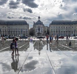 Keywords: burgundy plaza buildings architecture city france europe empedrado source reflection mirror water brightness
