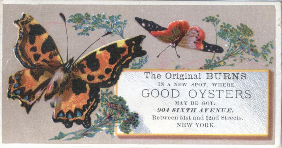 | Keywords: insects butterflies flowers oysters restaurants seafood eating & drinking eatingdrinking victorian tradecards victoriantradecards miami university libraries miamiuniversitylibraries muohio digital collections muohiodigitalcollections Persistent URL: digital.lib.muohio.edu/u?/tradecards,3221 Subject (TGM): Insects; Butterflies; Flowers; Oysters; Restaurants; Seafood; Eating & drinking; Persistent URL: digital.lib.muohio.edu/u?/tradecards,3221 Subject (TGM): Insects; Butterflies; Flowers; Oysters; Restaurants; Seafood; Eating & drinking; |