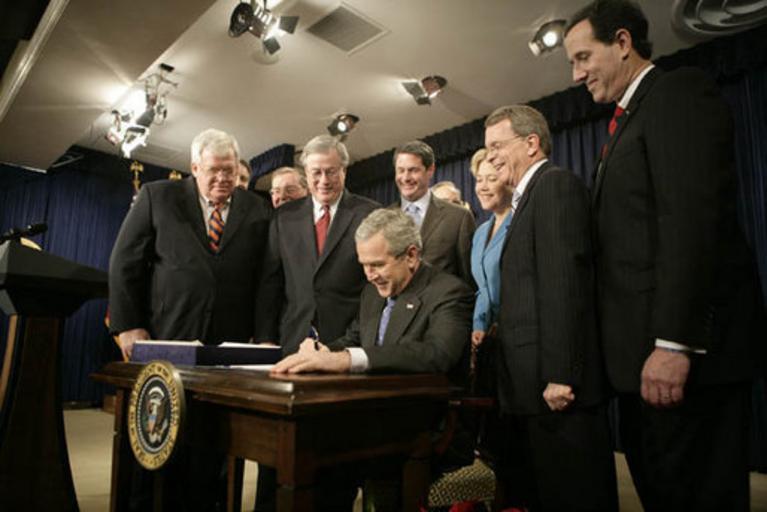 | Keywords: BushSignsHR6111Vitter.jpg President George W Bush signs H R 6111 the Tax Relief and Health Care Act of 2006 in the Dwight D Eisenhower Executive Office Building Dec 20 2006 Pictured with the President are from left Speaker Dennis Hastert Sen Bill Frist R-Tenn obscured Sen Pete Domenici R-N M obscured Rep Bill Thomas R-Calif Sen David Vitter R-La Secretary of the Interior Dirk Kempthorne obscured Sen Mary Landrieu D-La Sen Mike DeWine R-Ohio and Sen Rick Santorum R-Pa White House photo by Kimberlee Hewitt via White House website at http //www whitehouse gov/news/releases/2006/12/images/20061220-2_p122006kh-0458-515h html White House photo by Kimberlee Hewitt 2006-12-20 Kimberlee Hewitt PD-USGov George W Bush in 2006 20061220 Dennis Hastert Mary Landrieu Rick Santorum in 2006 David Vitter Mike DeWine George W Bush signing federal legislation 20061220 |