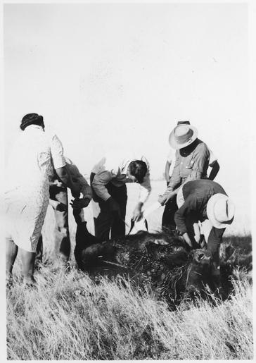 | Keywords: Butchering a buffalo - NARA - 285514.tif Scope and content Skinning hanging the carcass staking out the hide and drying the meat General notes 285514 Local identifier Department of the Interior Bureau of Indian Affairs Pine Ridge Agency 09/17/1947 - 09/09/9999 NARA's Central Plains Region Kansas City NREA 400 West Pershing Road Kansas City MO 64108 other date ~ 1940 Record group Record Group 75 Records of the Bureau of Indian Affairs 1793 - 1999 Record group ARC 404 Education Decimal Files compiled 1937 - 1959 Series ARC 285492 File unit File unit ARC Variant control numbers NAIL Control Number NRE-75-PRSERIES175-1023 yes Other versions <gallery> File Butchering_a_buffalo_-_NARA_-_285514 tif tif File Butchering_a_buffalo_-_NARA_-_285514 jpg jpg </gallery> NARA-cooperation PD-USGov NARA TIF images with categorized JPGs South Dakota |