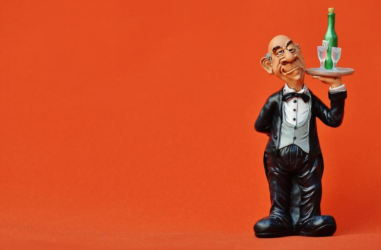 Keywords: butler tray beverages wine champagne operation gastronomy man funny upper restaurant waiter