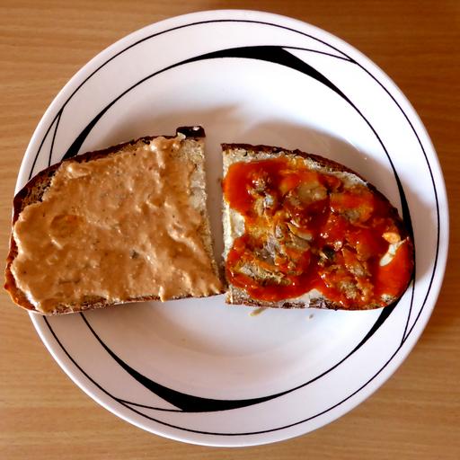 Keywords: Buttered-bread-with-fish-and-spread.jpg de Butterbrot mit Auberginenaufstrich und Butterbrot mit Fisch in Tomatensoße en Bread and butter 2016-03-13 15 22 29 own MartinThoma other versions cc-zero Taken with Panasonic Lumix DMC-TZ41 Images by Martin Thoma/Food Bread and butter Brown bread |