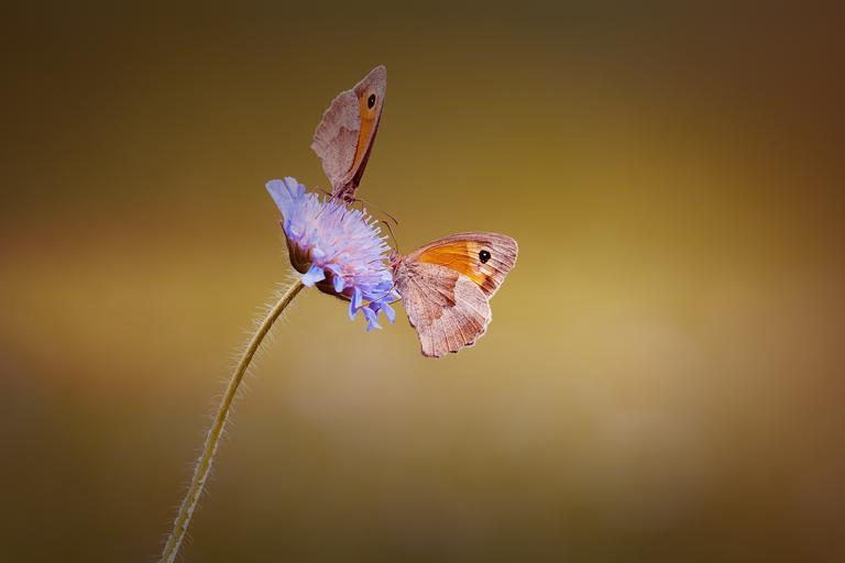 Keywords: butterflies two two butterflies meadow brown satyrinae edelfalter flight insect insect animal flower blossom bloom blue blue flower blue blossom blue wiesenblume pointed flower summer nature wild life landed close wildlife photography